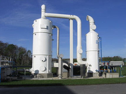 The basic principle of degasification is to force a column of air up-flow over a thin film or small drops of down-flow water. This procedure oxidizes iron and manganese; allow gases such as carbon dioxide, methane and hydrogen sulfide to escape and to let volatile substances such as phenol vaporize into the air.